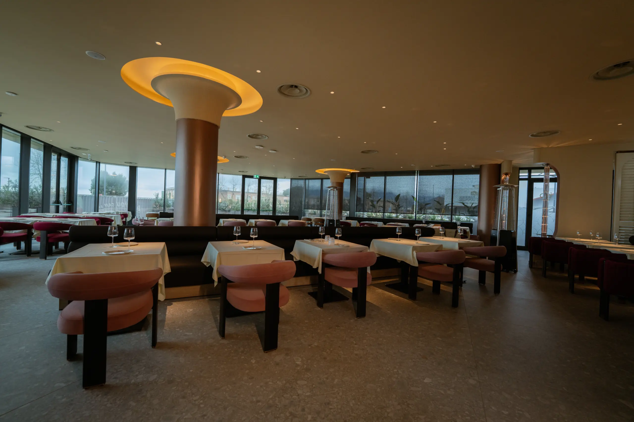 Il ristorante sorge in una moderna struttura di nuova costruzione sotto le innovative torri del complesso residenziale di Porte del Mare, a due passi dalla Marina di Arechi, porto turistico del litorale.